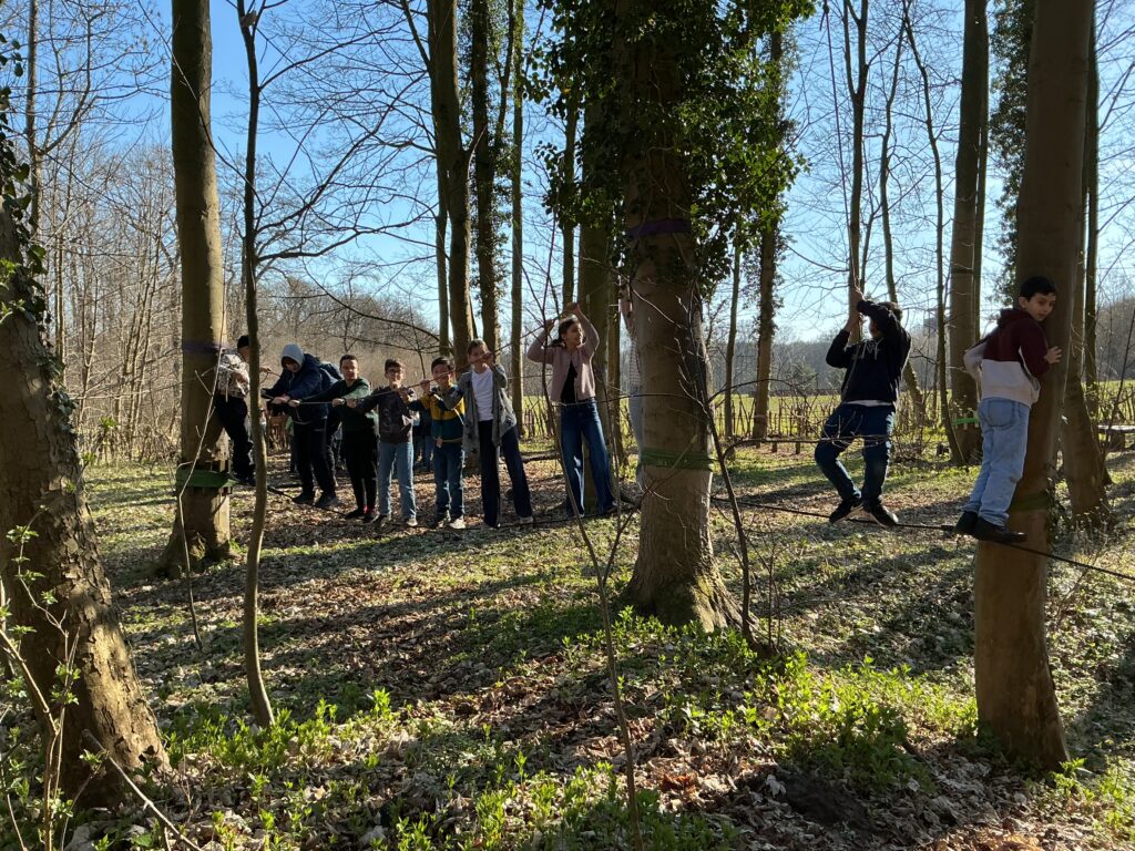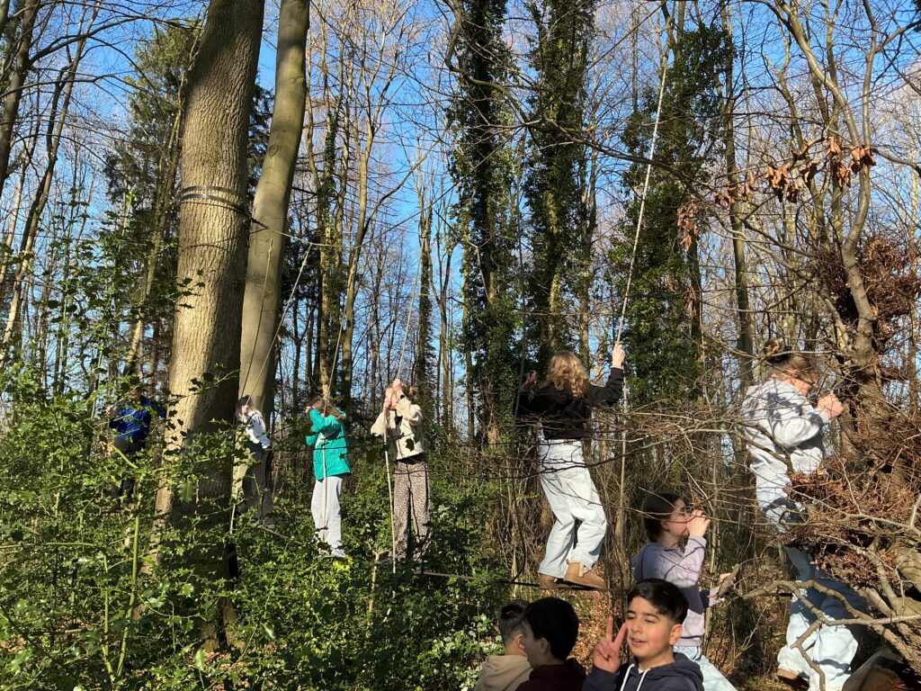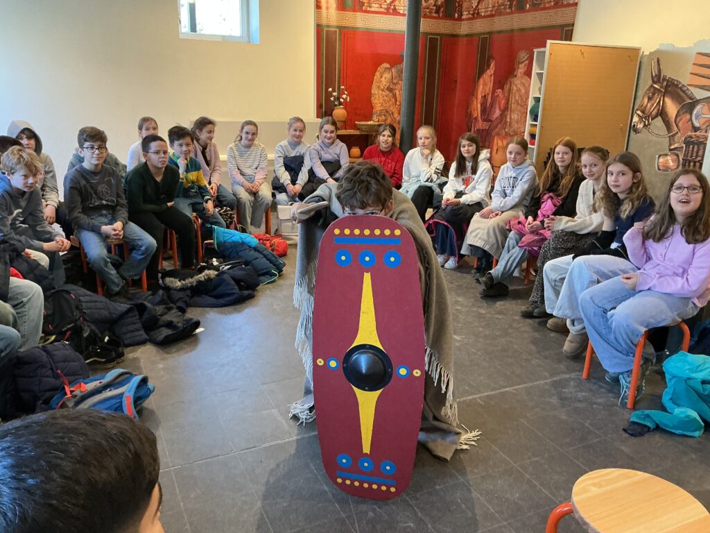 Bei unserer Ankunft konnten sich alle zunächst mit einem kleinen Frühstück stärken, um im Anschluss den Niedrigseilgarten und das Museum zu erkunden. Im Niedrigseilgarten konnten unsere Schülerinnen und Schüler zunächst ihre Beweglichkeit und ihr Geschick unter Beweis stellen. In kleinen Gruppen kämpften sie sich mutig durch die unterschiedlichsten Hindernisse. Anschließend schlüpften sie in die Rolle von Römern und Germanen. Unter Anleitung von den örtlichen Museumpädagogen durften wir römische und germanische Kleidung anprobieren. Zugleich erfuhren wir viel über den Alltag und das Leben in Germanien – und natürlich auch über Varus und Arminius.