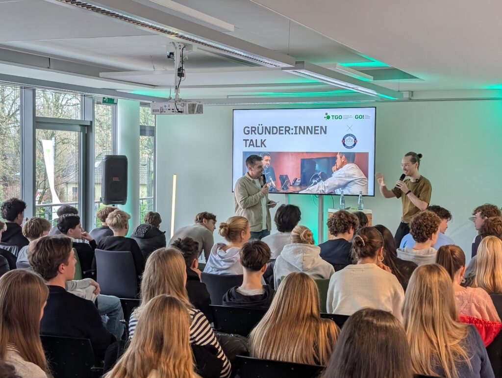 Im spannenden Gründer und Gründerinnen „Talk“ erfuhren wir viel über das TGO als Standort für Gründer und Förderer von Start Ups, über die Entwicklung einer App, den Weg von der Idee zu einem erfolgreichen Unternehmen und auch das Leben als Gründer. Daneben gab es auch einen intensiven Austausch, in dem viele Fragen beantwortet wurden. So nahmen wir reichlich Inspiration für unsere eigenen Projekte und Businesspläne im Rahmen des Schülerwettbewerbs „Jugend gründet!“ mit nach Hause.