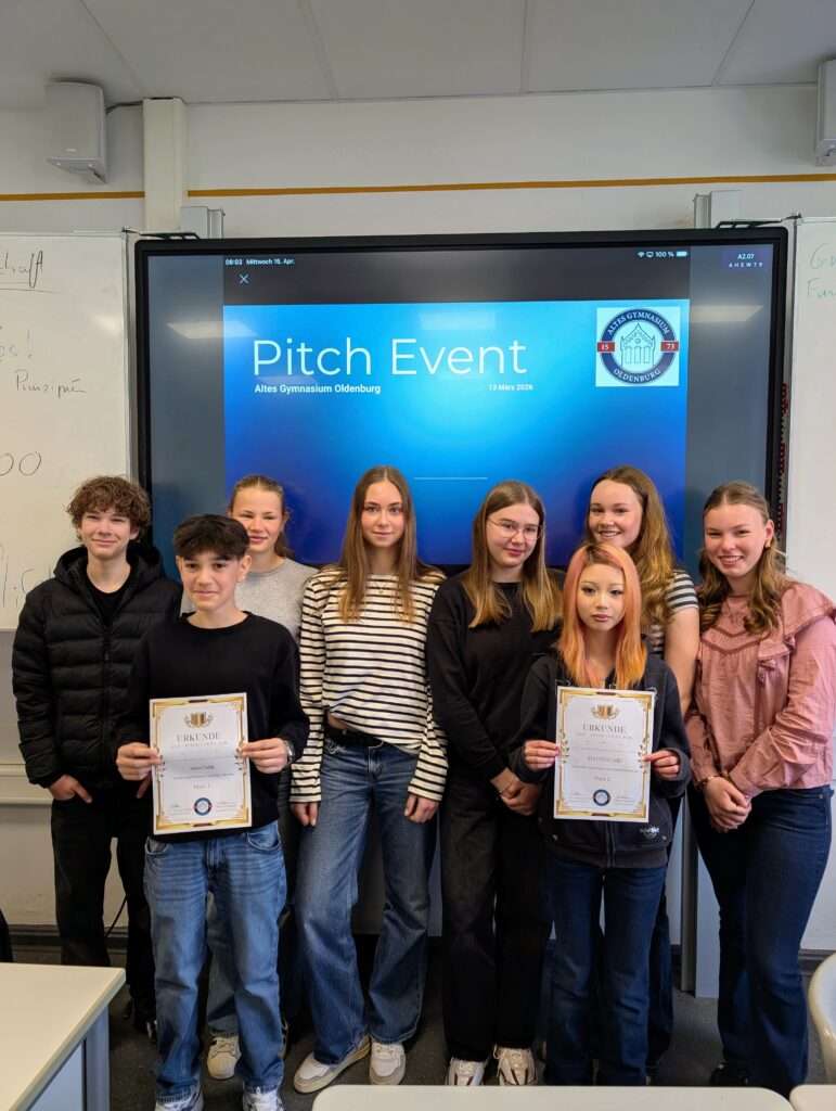 Den zweiten Platz belegte das Team „FloatGuard“ (Eeske Schwing, Evke Schonhoff, Charlotte Huber und Thu Nga Nguyen). Ihre Idee entstand aus einem realen Problem: Ein verlorenes Smartphone beim Wassersport. Die Lösung: Eine schwimmfähige, wasserdichte Handyhülle, die Geräte schützt und sichtbar an der Wasseroberfläche hält. Die Präsentationen zeigten eindrucksvoll, wie praxisnah wirtschaftliche Bildung sein kann: Nicht nur Probleme zu erkennen, sondern Lösungen zu entwickeln, die idealerweise auch am Markt bestehen können. Die Veranstaltung verdeutlichte die Bandbreite unternehmerischen Denkens: Von technischen Innovationen bis hin zu alltagsnahen Problemlösungen reichten die vorgestellten Konzepte. Der Pitch Event machte deutlich: Unternehmergeist beginnt oft im Kleinen – und kann schon in der Schule große Ideen hervorbringen.