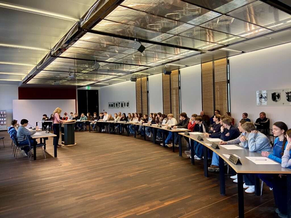 Am Montag ging es früh weiter, weil die Schülerinnen und Schüler im ZDF-Morgenmagazin als Zuschauer zugegen waren. Begleitet von ihren Fachlehrern Jörg Brinkmann und Saskia Rolle ging es anschließend weiter zum Bundesrat, wo die Schülerinnen und Schüler eine Sitzung simulierten und sich als Thema eine Anpassung der Grundsicherung nach SGB II gewählt hatten. Sie diskutierten kontrovers und lernten damit die Funktion der Länderkammer kennen.
