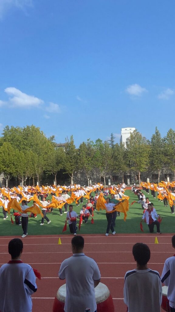 „Das ist komplett irre, darauf komm´ ich nicht klar”, sagte einer der AGO-Schüler, während er sein Handy hochhält, um die ungefähr 300 trommelnden und tanzenden Zehntklässler zu filmen, die nach ihrem einmonatigen Training eine nahezu perfekt synchrone Performance für die Eröffnung des Sportfestes ablieferten, eine Mischung aus Tanz und Kung-Fu mit bunten Tüchern. Ein Satz, der stellvertretend für den gesamten Chinaaustausch stehen kann. Denn trotz aller Vorbereitung: China ist ein Land der Extreme – und das Ausmaß des zuvor Unvorstellbaren begreift man erst, wenn man es mit den eigenen Augen sieht.